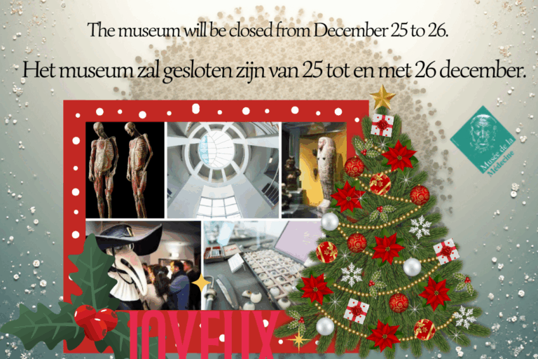 Le Musée de la Médecine sera fermé les 25 et 26 décembre. Nous vous souhaitons d’ores et déjà un très joyeux Noël à toutes et à tous !