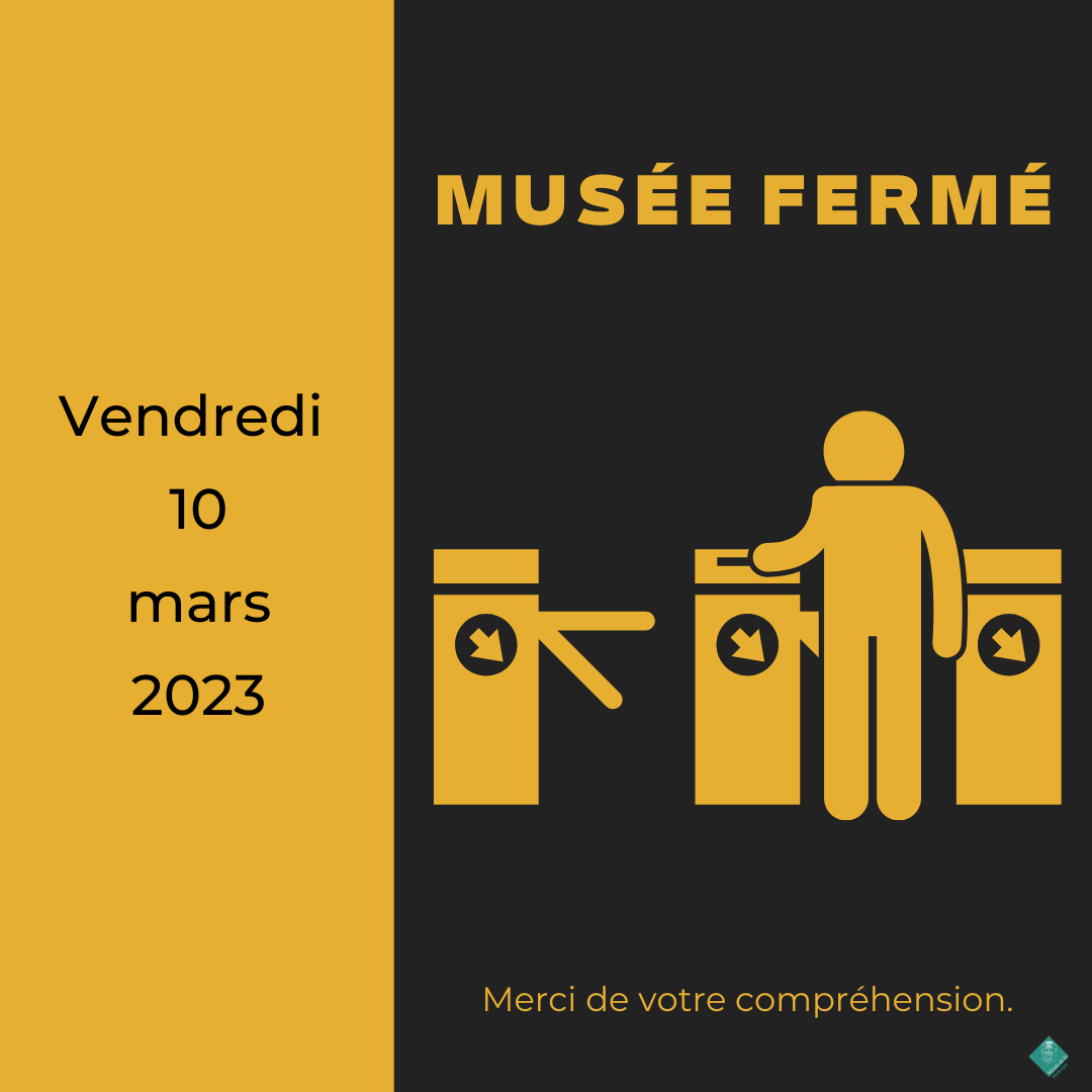 DétailsLe Musée sera inaccessible au public lundi 30 janvier et vendredi 3 février 2023. Merci de votre compréhension.