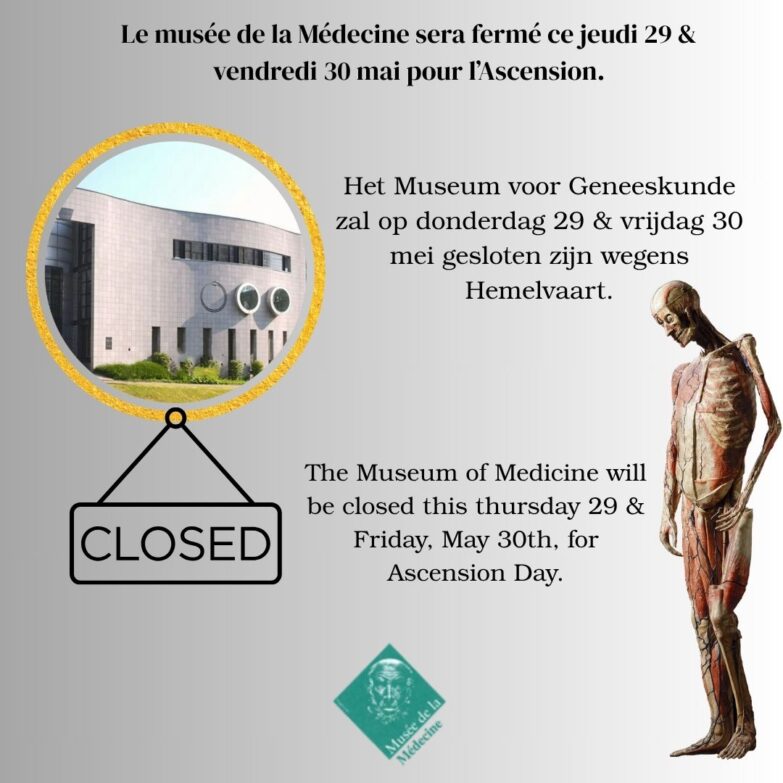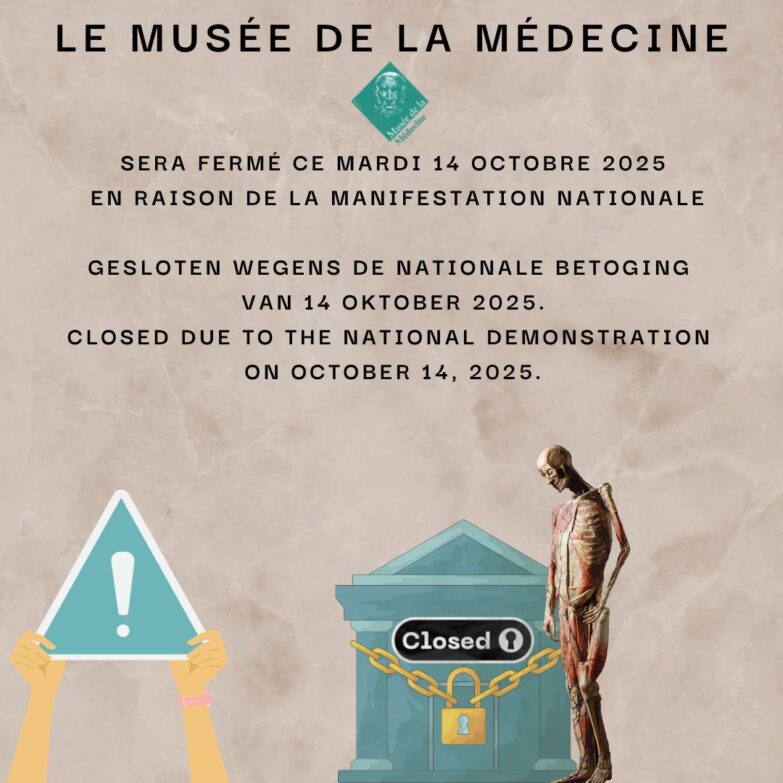 Ce mardi 14 octobre 2025 le Musée de la Médecine sera fermé pour cause de manifestation nationale. Désolé du désagrément. ——————– Ndls: Op dinsdag 14 oktober 2025 zal het Museum van de Geneeskunde gesloten zijn wegens de nationale betoging. Onze excuses voor het ongemak. On Tuesday, October 14, 2025, the Museum of Medicine will be…