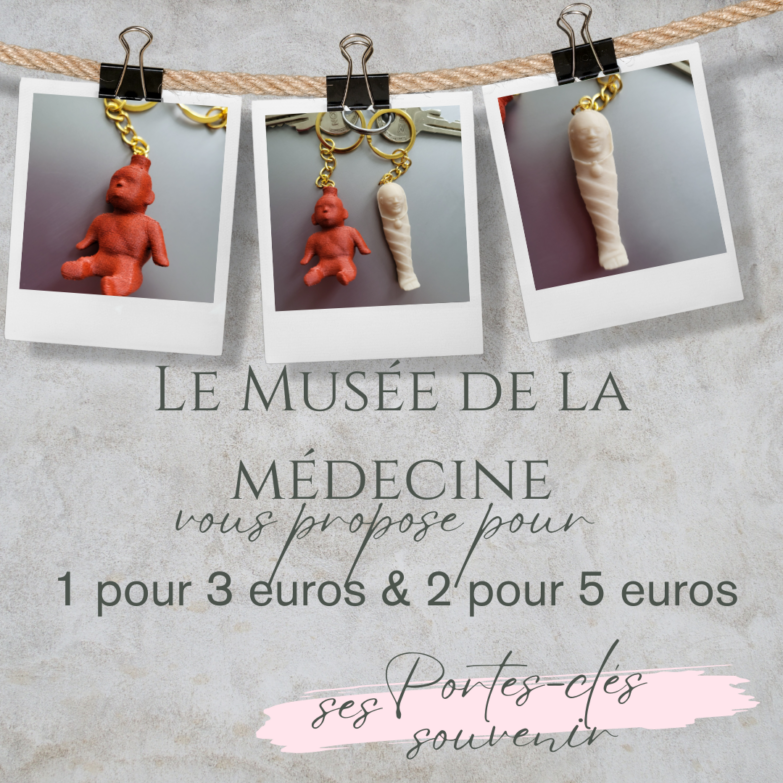 Dès à présent en vente dans votre Musée de la Médecine, des portes-clés souvenir représentant deux pièces de notre collection. N’hésitez pas à nous les demander lors de votre visite. 😇