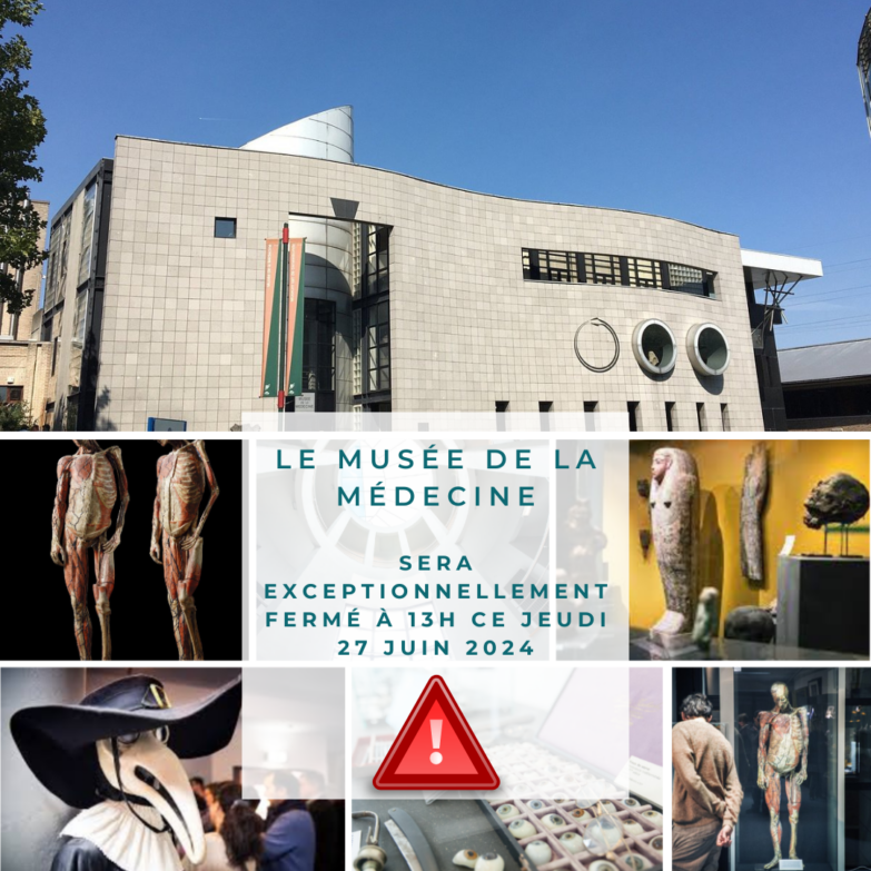 Le Musée de la Médecine sera exceptionnellement fermé à 13h00 ce jeudi 27 juin 2024 merci de votre compréhension. Bonne journée 🙂