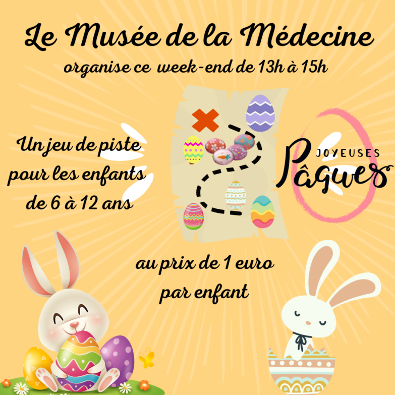 Ce week-end le Musée de la Médecine organise un jeu de piste pour les enfants de 6 à 12 ans. Heure de 13h00 à 15h00 dernière entrée. Prix: 1 euro par enfants. (devant être accompagnés d’un adulte)